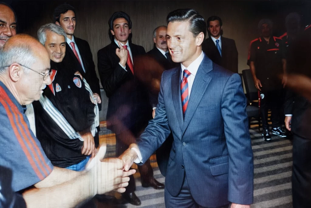 Fue en el primer almuerzo de la delegación, que insólitamente el vocero presidencial se apersonó al comedor y pidió por el Jefe de Prensa. En ese contacto le comunicó que terminado el encuentro con el empresariado, Peña Nieto quería sacarse una foto con un jugador al que admiraba desde joven y saber si era posible.